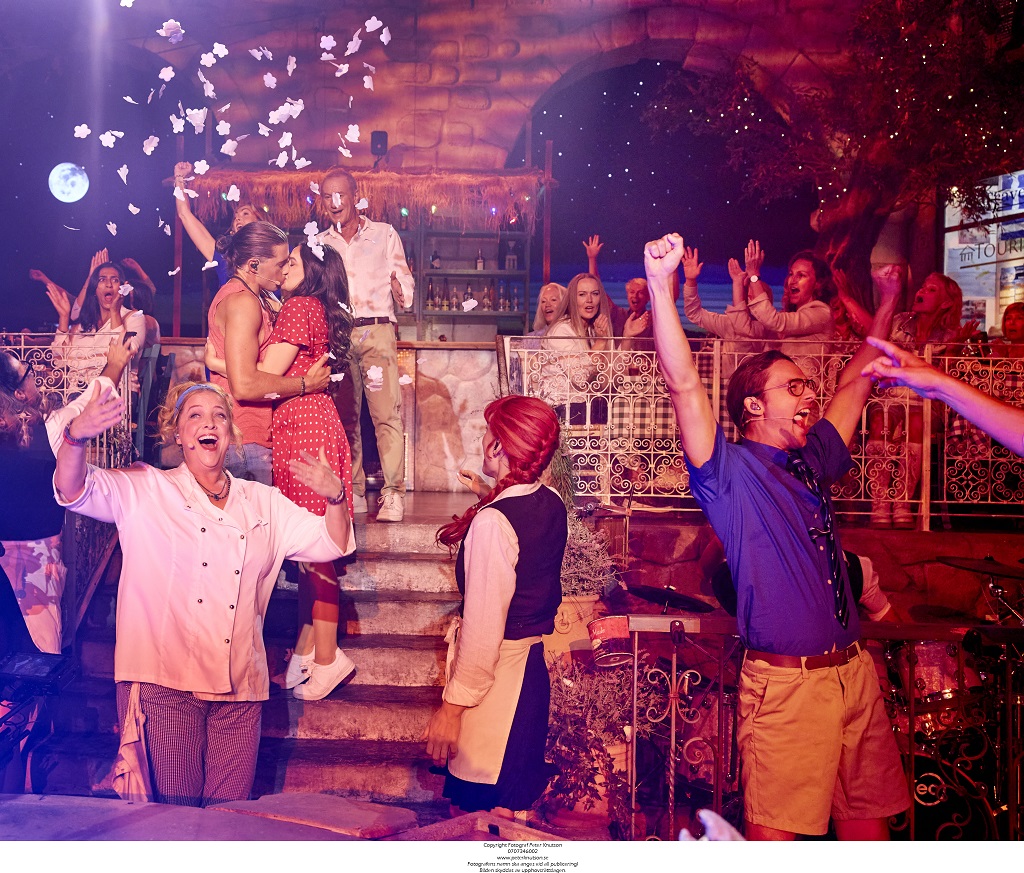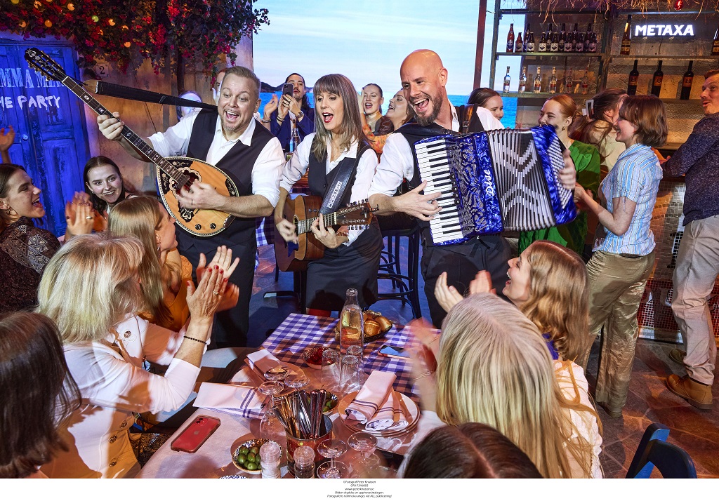 Kliv in genom dörrarna och du har magiskt förflyttats till den grekiska paradisön Skopelos och Nikos taverna. Här väntar en härlig helkväll som inkluderar allt från välkomstouzo till en läcker fyrarätters medelhavsmeny, sång, dans, våghalsiga luftfärder, dansanta servitörer och självklart ABBAs låtar och en fest som aldrig verkar vilja ta slut. Opa!